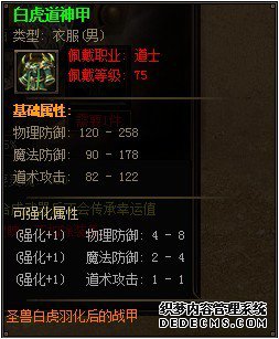 金装传奇sf绿色白虎套装之白虎道神甲属性图