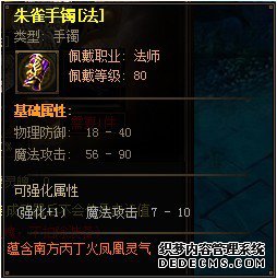 金装传奇sf朱雀套装之朱雀手镯(法)属性图